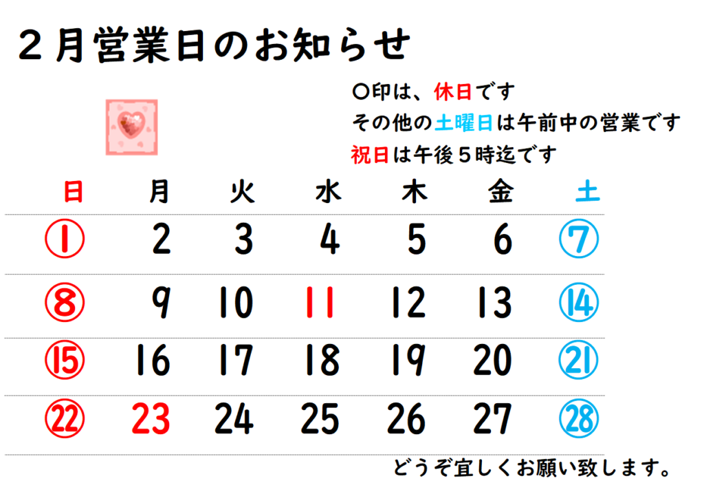 2月の営業日