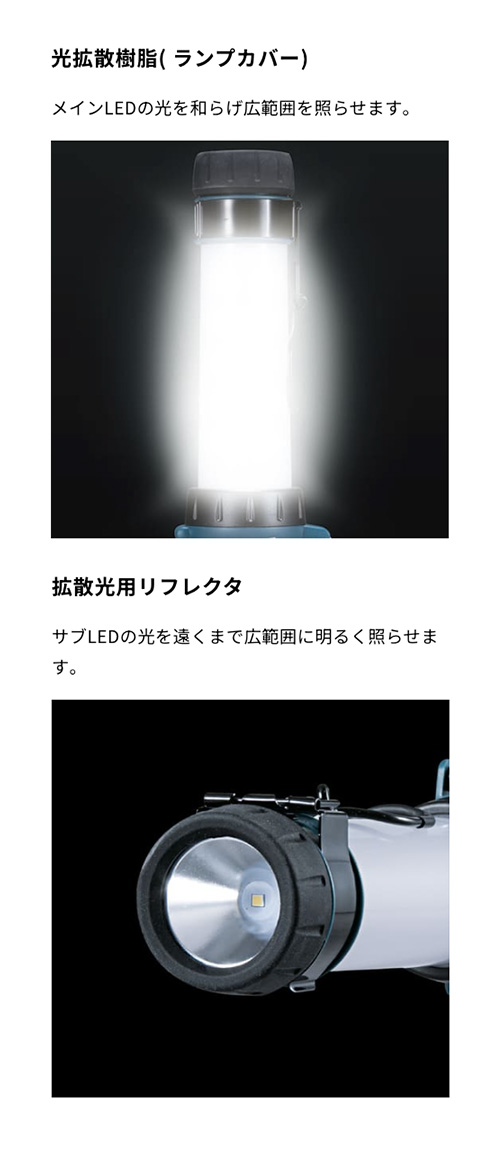 | BL1830B-3.0Ah | メイン20灯:約6時間30分 メイン10灯:約12時間 サブ1灯:19時間 | ||