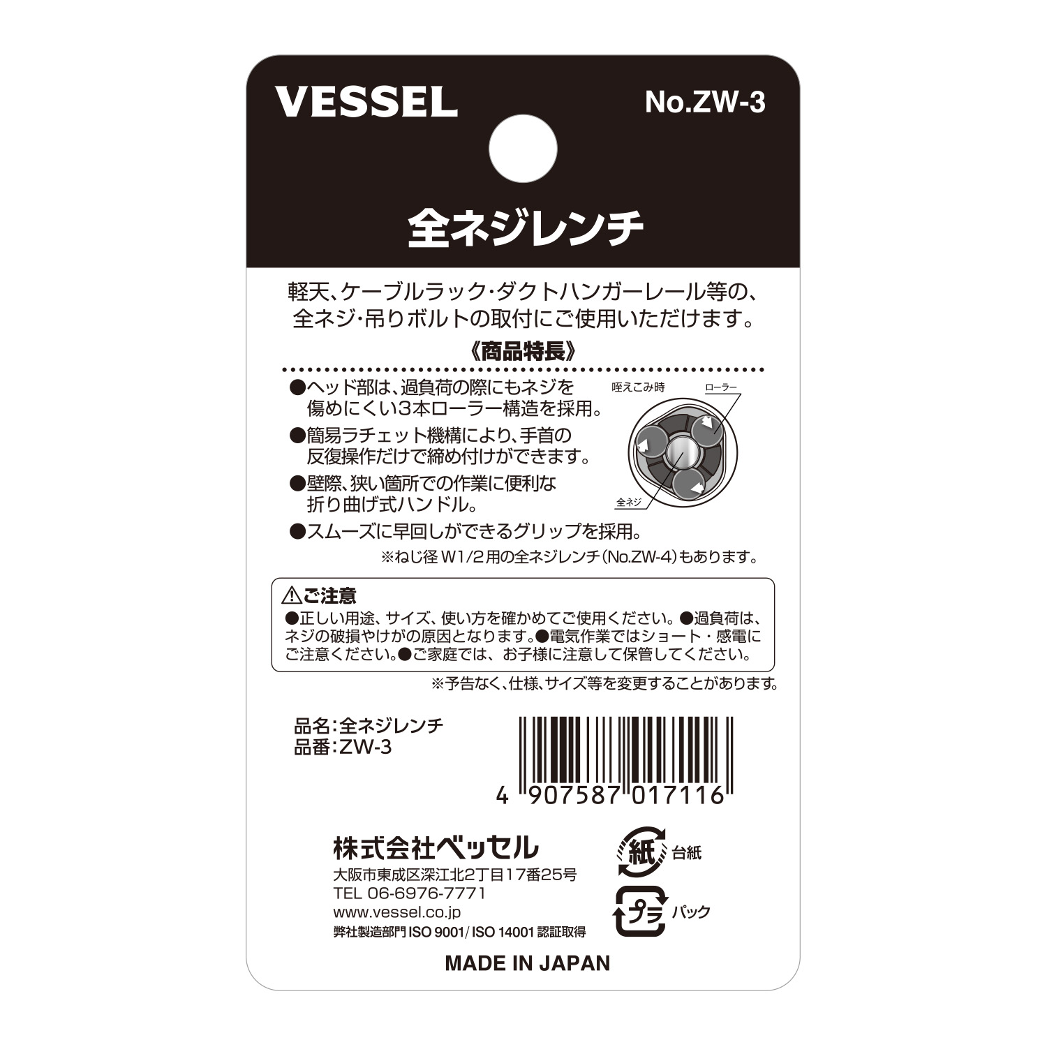 製品番号ZW-3(ネジ径3/8用)